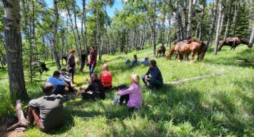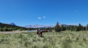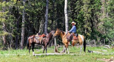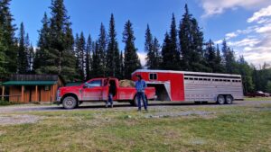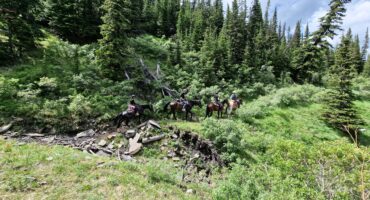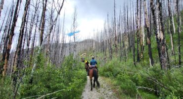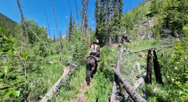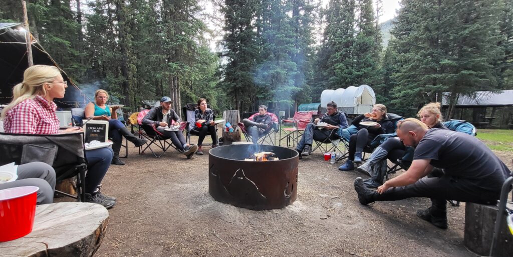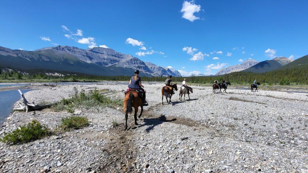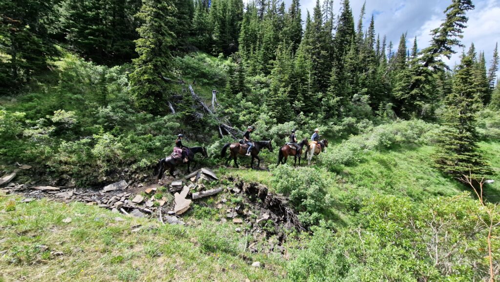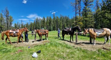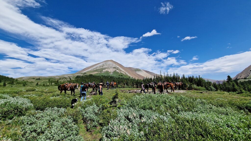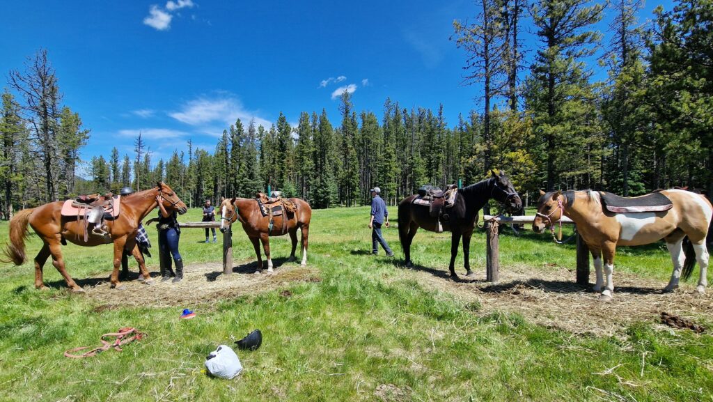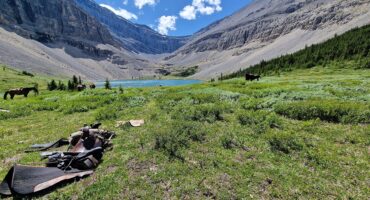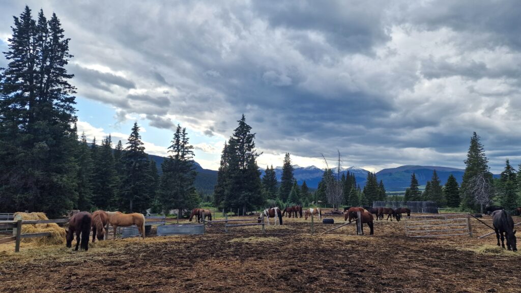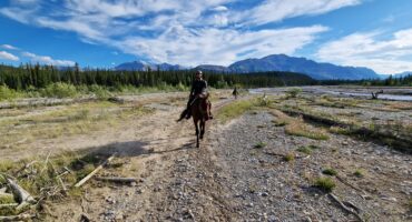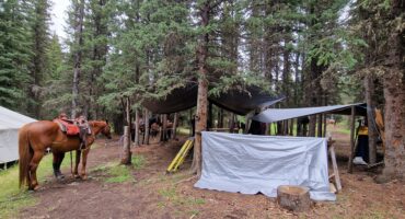 Na kolejne dni przeniesiemy się nieco na północ by dołączyć do wozów konnych zaprzyjaźnionej ekipy z Clearwater Basin. Podążając za nimi dotrzemy do niezwykłego obozowiska w dziczy. Gospodarze tego zjawiskowego miejsca otwierają swoją bazę w okolicach maja – często jeszcze w śniegu – przywożąc wszystko konnymi wozami. Obóz zwijają jesienią, w okolicach Święta Dziękczynienia, również wywożąc cały sprzęt wozami. Miejsce jest przepiękne i szalenie ciekawe, a nasi gospodarze – koniarze z krwi i kości – uwielbiają gościć innych jeźdźców.