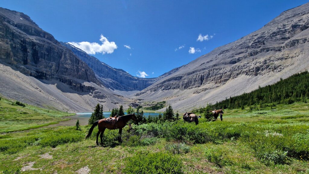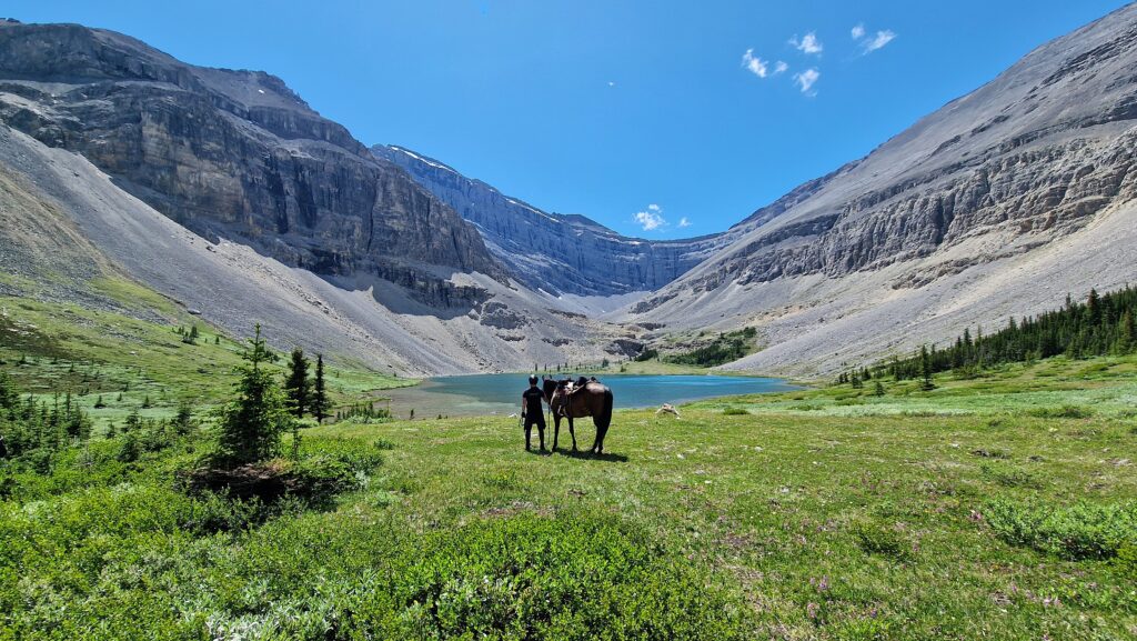 Jeżeli pogoda nie stanie nam wyraźnie na przeszkodzie, z Clearwater Basin wyruszymy na wyprawę nad Lost Guide Lake – nieprawdopodobnie piękne i malownicze górskie jezioro. W tej części towarzyszyć nam będą konie juczne, które przeniosą całe wyposażenie obozowe. Po dotarciu nad jezioro rozbijemy obóz i zostaniemy na jedną noc pod namiotami w tym niesamowitym miejscu. Kolejnego dnia zwiniemy obóz, spakujemy wszystko na konie i wrócimy do bazy u podnóża.