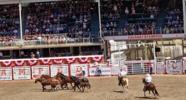 Z dzikich ostępów Alberty ruszamy na Calgary Stampede – kanadyjskie święto rodeo i kultury Dzikiego Zachodu, którego nie można przegapić, będąc w tym czasie w Albercie! Niemal nieznana w Polsce impreza jest ogromnym wydarzeniem łączącym festiwal, targi, zawody, pokazy, koncerty i wydarzenia towarzyszące. Jej historia sięga końca XIX wieku, a na dobre wpisała się w krajobraz Calgary i Kanady ponad sto lat temu. Organizatorzy dumnie twierdzą, że jest to „największe widowisko plenerowe na świecie” – i nie ma w tym krzty przesady. W wydarzeniu bierze udział około 7 500 zwierząt, a przez dziesięć dni przez ogromny teren Stampede Grounds przewija się niemal 1,5 miliona odwiedzających. Rozmach, skala i mnogość atrakcji sprawiają, że tego festiwalu po prostu nie da się opisać – to trzeba zobaczyć i przeżyć.