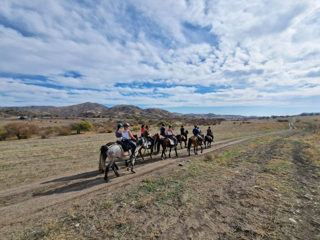 Trasa rajdu jest wyjątkowo zróżnicowana. Przemierzymy półpustynne przestrzenie przy granicy z Azerbejdżanem, przeprawimy się przez kaniony pradawnych rzek i wdrapiemy na góry otaczające sawanny, by podziwiać widoki jak z innego świata. Szlak prowadzi raz przez rozległe łąki i otwarte pustynne równiny, innym razem wije się w wąskich, skalistych kanionach i korytach okresowych rzek. Podczas sześciu dni konnej wędrówki pokonamy około 130 km. Tempo będzie spokojne — stęp idealnie pozwoli chłonąć zmieniające się krajobrazy i naprawdę poczuć przestrzeń Waszlowani. Nie zabraknie jednak długich, kilkuminutowych galopów po ścieżkach i drogach jakby stworzonych właśnie do tego. Kilka razy w ciągu dnia, z uśmiechem, będziemy zostawiać za sobą chmurę kurzu.