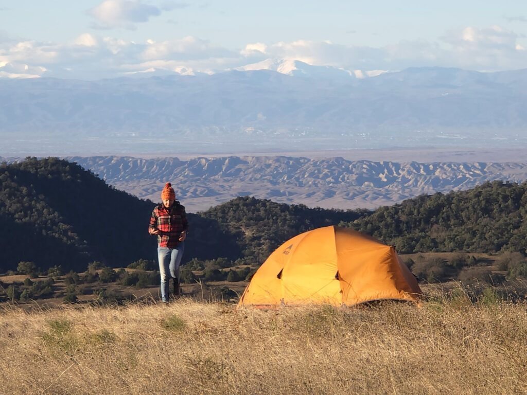 Nocujemy głównie pod namiotami przy posterunkach strażników Parku Narodowego Waszlowani, zwanych rangersami. Jedne z tych punktów są większe, inne bardziej skromne — część ma podstawową infrastrukturę sanitarną, a część jedynie minimalną. Rajdowi towarzyszy pojazd, który przewozi bagaże i zapewnia podstawowy prysznic turystyczny, żeby choć trochę opłukać się z kurzu gruzińskiej sawanny.