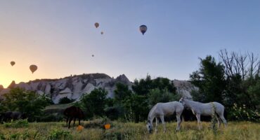 Kapadocja to kraina rodem z legend i baśni. Nasz szlak prowadzi przez labirynt bajkowych dolin: Dolinę Gołębi, Dolinę Różową, Dolinę Mieczy, Dolinę Wyobraźni, Dolinę Miłości. Napotkamy ruiny pradawnych osad, zobaczymy na niebie dziesiątki startujących balonów, zwiedzimy starożytne zabytki, a po drodze popasać będziemy przy pięknie zastawionych stołach. Połowę nocy spędzimy w miejscowych, klimatycznych hotelikach, a połowę obozując pod gwiazdami. W tę podróż poniosą nas szlachetne konie arabskie i karaczajskie.