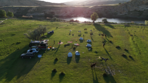Drugą połowę nocy, na zmianę z noclegami w hotelikach, spędzamy obozując pod namiotami. Jedną noc pod namiotami spędzimy tuż nad ranczo, z dostępem do łazienki i toalety w stajni. Pozostałe trzy noce obozować będziemy nieco dalej od cywilizacji. Zapewniamy namioty i karimaty, a w trakcie trzech nocy obozowych na szlaku grupie asystuje (fajowy! 🙂 ) bus z kuchnią oraz toaletą/prysznicem.