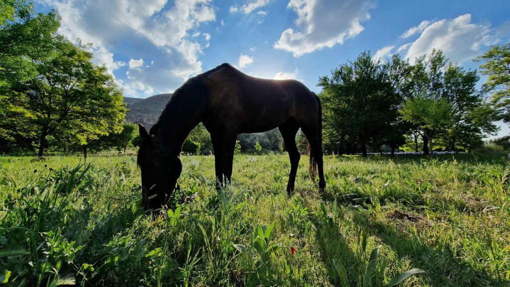 Drugą połowę nocy, na zmianę z noclegami w hotelikach, spędzamy obozując pod namiotami. Jedną noc pod namiotami spędzimy tuż nad ranczo, z dostępem do łazienki i toalety w stajni. Pozostałe trzy noce obozować będziemy nieco dalej od cywilizacji. Zapewniamy namioty i karimaty, a w trakcie trzech nocy obozowych na szlaku grupie asystuje (fajowy! 🙂 ) bus z kuchnią oraz toaletą/prysznicem.