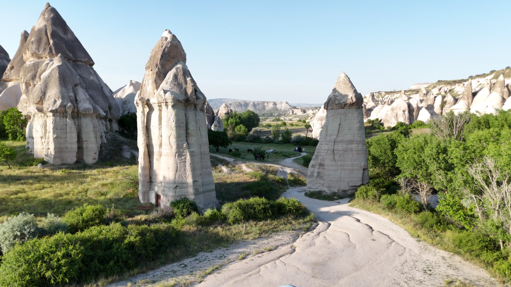 Na trasie obejrzymy niektóre z pozostałości niezwykłej historii regionu, zarówno z siodła, jak i podczas zwiedzania wybranych przez nas miejsc i atrakcji. Charakterystyczne dla Kapadocji, różnorodne, ciekawe i przepiękne formacje skalne są bardziej rozległe, niż wygląda to w folderach i skrywają bezlik obiektów. Wykute w skałach kryjówki, składy, mieszkania, kompleksy jaskiniowe i całe miasteczka robią niezwykłe wrażenie. Wiele z nich jest nadal użytkowane na różne sposoby, począwszy od skalnych hoteli i prywatnych mieszkań, przez winnice, pomieszczenia dla zwierząt – w tym stajnie, uprawy i magazyny, po kawiarnie i miejsca odpoczynku.