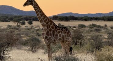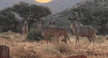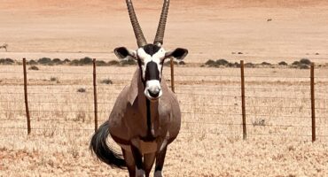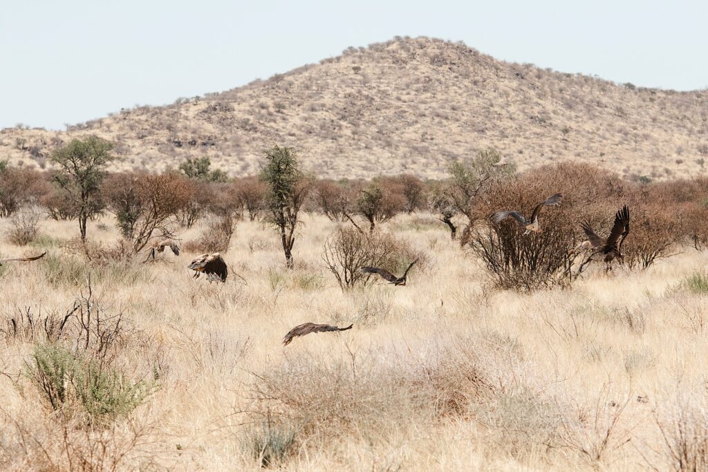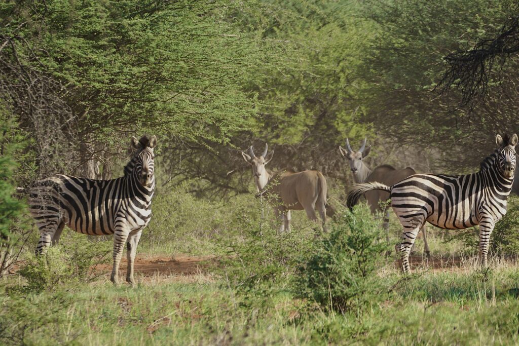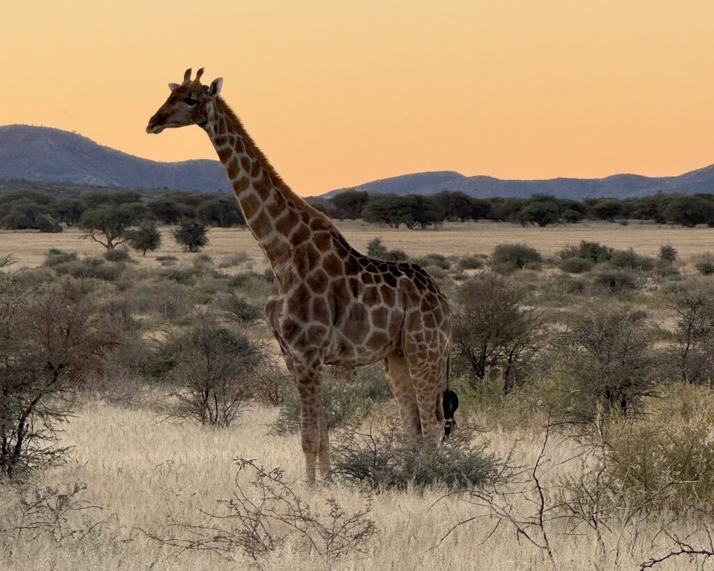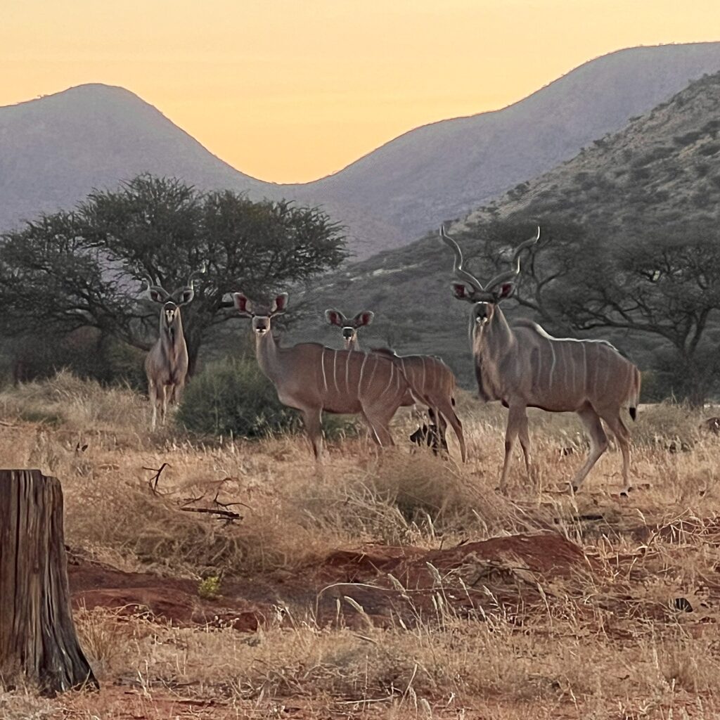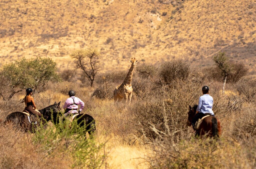 Pierwsze cztery dni w Namibii spędzimy na sporych rozmiarów rodzinnej farmie, na której czterdzieści koni stanowi najmniej egzotyczną część miejscowego okolicznego świata zwierząt. Na obszarze pokaźnego, liczącego 11 000 hektarów, terenu mieszka bezlik zwierząt. Oprócz koni i zwierząt domowych na farmie hodowane jest bydło rasy Simental, bardzo rozpowszechnionej w Europie, choć w Polsce mało popularnej. Przede wszystkim jednak gospodarstwo jest domem wielu zwierząt egzotycznych, które oglądać i podglądać będziemy z siodła. Na rozległym obszarze spotkać można żyrafy, antylopy, zebry, oryksy – narodowy symbol Namibii, (trochę wredne) strusie czy guźce, na których jamy trzeba uważać jadąc konno po niektórych częściach farmy. W okolicy występują też przeróżne jaszczurki, niewielkie ssaki, mniejsze kotowate, szakale, pawiany, a przy odrobinie szczęścia czasami udaje się wypatrzeć lamparty.