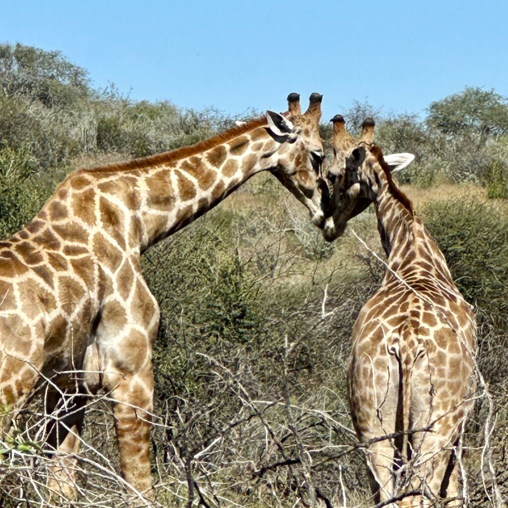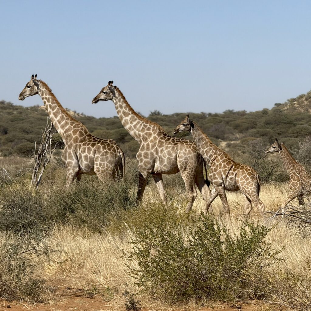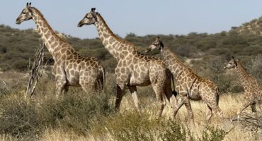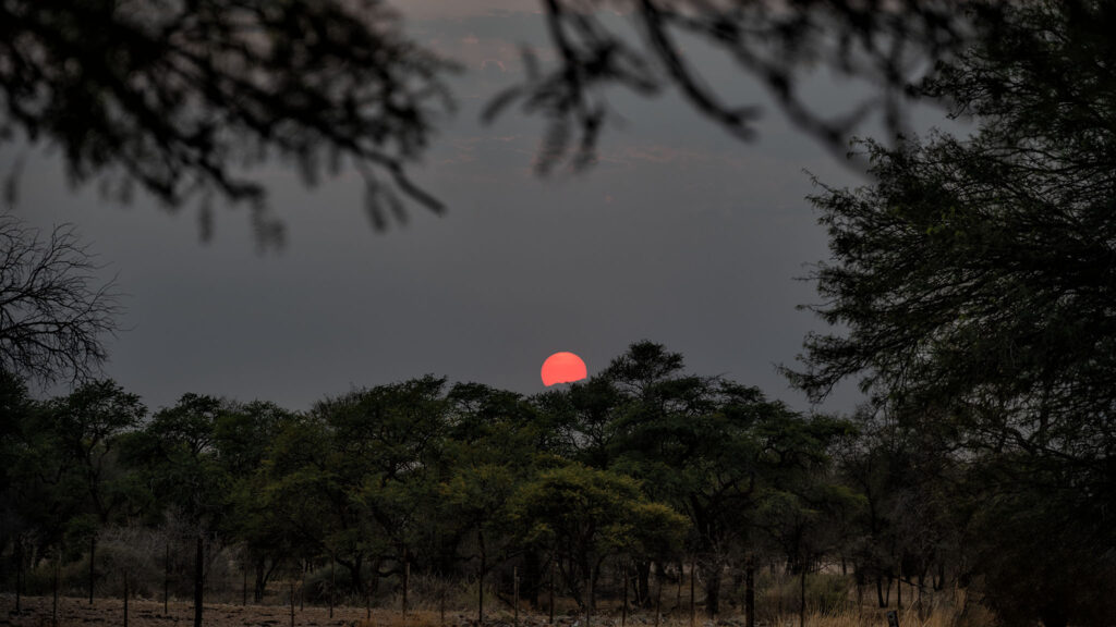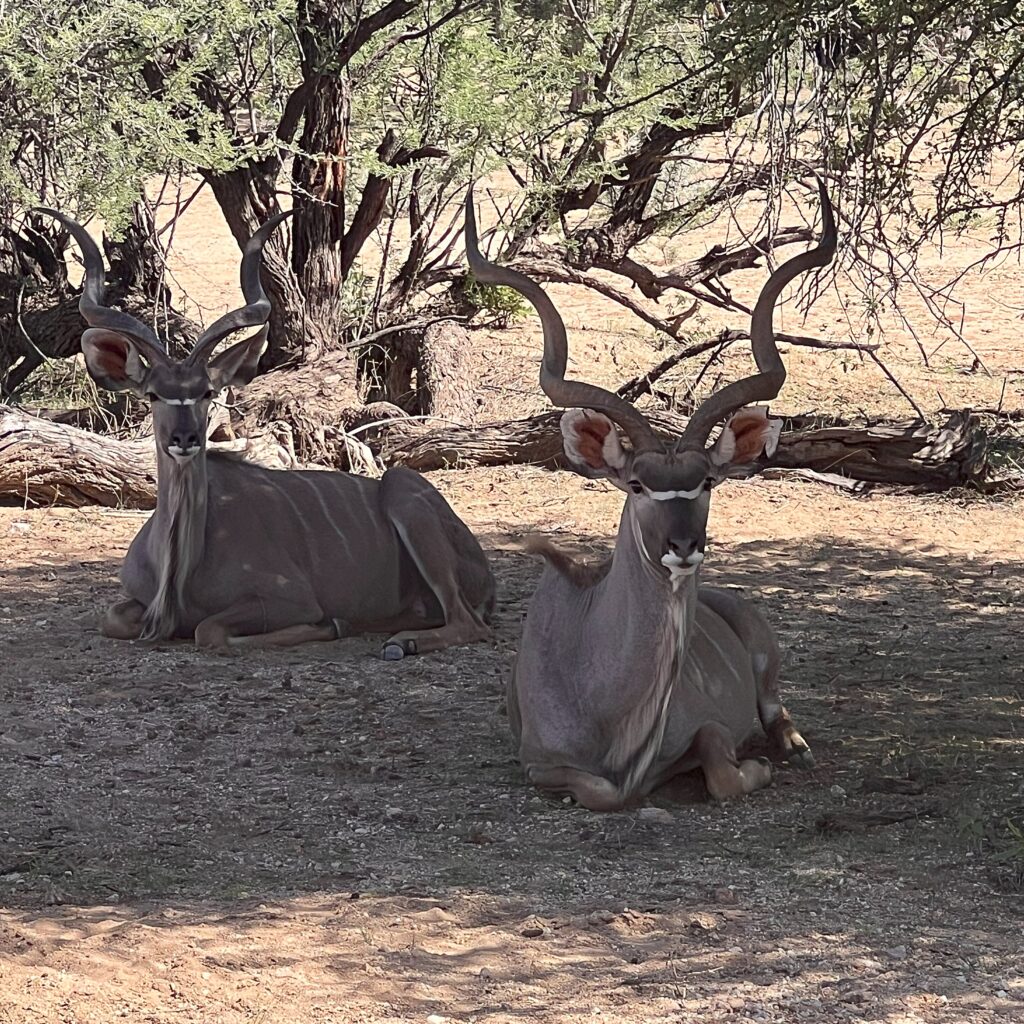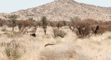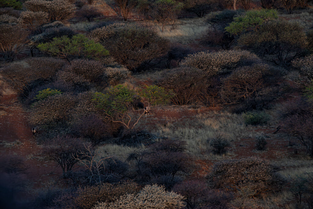 Pierwsze cztery dni w Namibii spędzimy na sporych rozmiarów rodzinnej farmie, na której czterdzieści koni stanowi najmniej egzotyczną część miejscowego okolicznego świata zwierząt. Na obszarze pokaźnego, liczącego 11 000 hektarów, terenu mieszka bezlik zwierząt. Oprócz koni i zwierząt domowych na farmie hodowane jest bydło rasy Simental, bardzo rozpowszechnionej w Europie, choć w Polsce mało popularnej. Przede wszystkim jednak gospodarstwo jest domem wielu zwierząt egzotycznych, które oglądać i podglądać będziemy z siodła. Na rozległym obszarze spotkać można żyrafy, antylopy, zebry, oryksy – narodowy symbol Namibii, (trochę wredne) strusie czy guźce, na których jamy trzeba uważać jadąc konno po niektórych częściach farmy. W okolicy występują też przeróżne jaszczurki, niewielkie ssaki, mniejsze kotowate, szakale, pawiany, a przy odrobinie szczęścia czasami udaje się wypatrzeć lamparty.