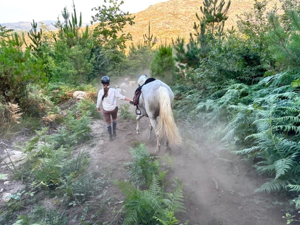 Pierwszą część dnia przeznaczymy na zwiedzanie. Po śniadaniu wybierzemy się pieszo do Entrimo, gdzie zobaczymy barokowy Kościół Matki Bożej Królewskiej z XVIII wieku. Następnie pospacerujemy uliczkami miasteczka i zatrzymamy się w lokalnym barze na pyszną kawę – polecamy carajillo con ron. 🙂 Po krótkim odpoczynku pojedziemy do term Rio Caldo w Lobios, by rozgrzać ciało i przygotować mięśnie do wieczornej jazdy. Choć na pierwszy rzut oka mogą wydawać się niepozorne, woda w niektórych miejscach jest naprawdę gorąca. Po kąpieli udamy się do pracowni Antonio „Toño” Monteiro, galicyjskiego rzeźbiarza, którego sztuka często nawiązuje do natury i krajobrazów regionu Xurés. Artysta opowie nam o źródłach swojej inspiracji, pokaże kilka prac, a oprócz uczty dla ducha przygotuje również coś dla ciała – lokalne tapas i własne trunki. Na późny lunch wrócimy do willi, a po posiłku wsiądziemy w siodła. Czeka nas magiczna podróż w świetle księżyca! Około 17:00 ruszymy do stajni, gdzie poznamy nasze konie. Po osiodłaniu rozpoczniemy 3–4 godzinną wędrówkę. Kolacja czeka nas w połowie drogi – w blasku zachodzącego słońca, w urokliwym miejscu nad strumieniem. Po zmroku wyruszymy dalej, a jedynym naszym światłem będzie księżyc odbijający się w tafli jeziora. Około północy, w ciszy i przy stukocie końskich kopyt, dotrzemy do Maus de Salas. Tam rozsiodłamy i nakarmimy konie, zjemy lekką kolację i udamy się na zasłużony odpoczynek.