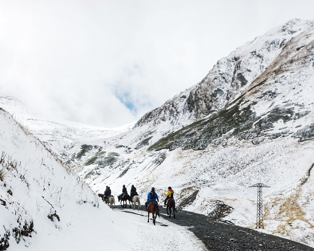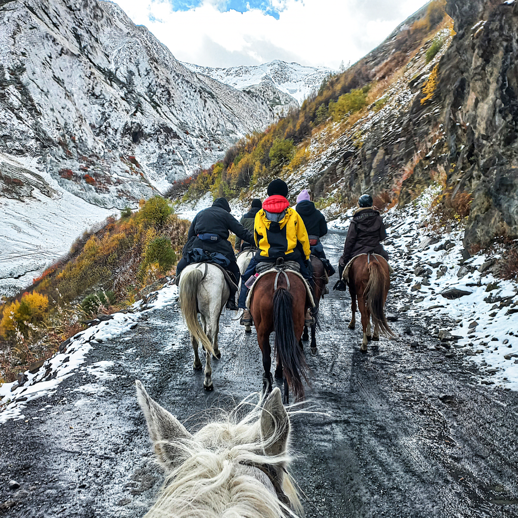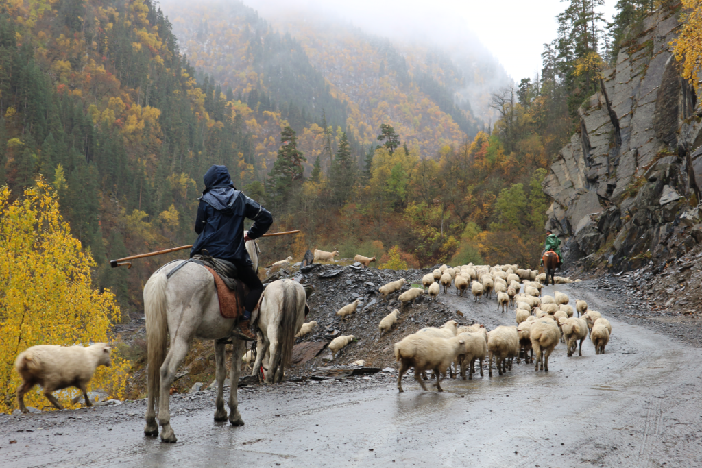 Jak co roku wyruszamy do Tuszetii w tym niezwykłym momencie. Jedziemy w góry aby spędzić kilka jesiennych dni zwiedzając Tuszetię konno. Potem dołączymy do pasterzy i horsemanów by wraz z nimi oraz psami pasterskimi spędzić spore stado owiec, kóz, krów i koni. Jesteśmy ostatnimi gośćmi w naszej bazie w Omalo, która wraz z naszym wyjazdem również zamknie się do wiosny. Bardzo niewykluczone, że pierwszych tchnień zimy doświadczymy podczas spędu na własnej skórze. 🙂