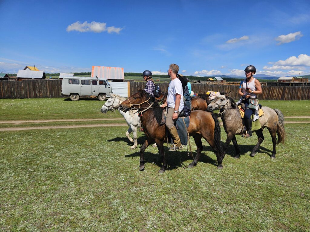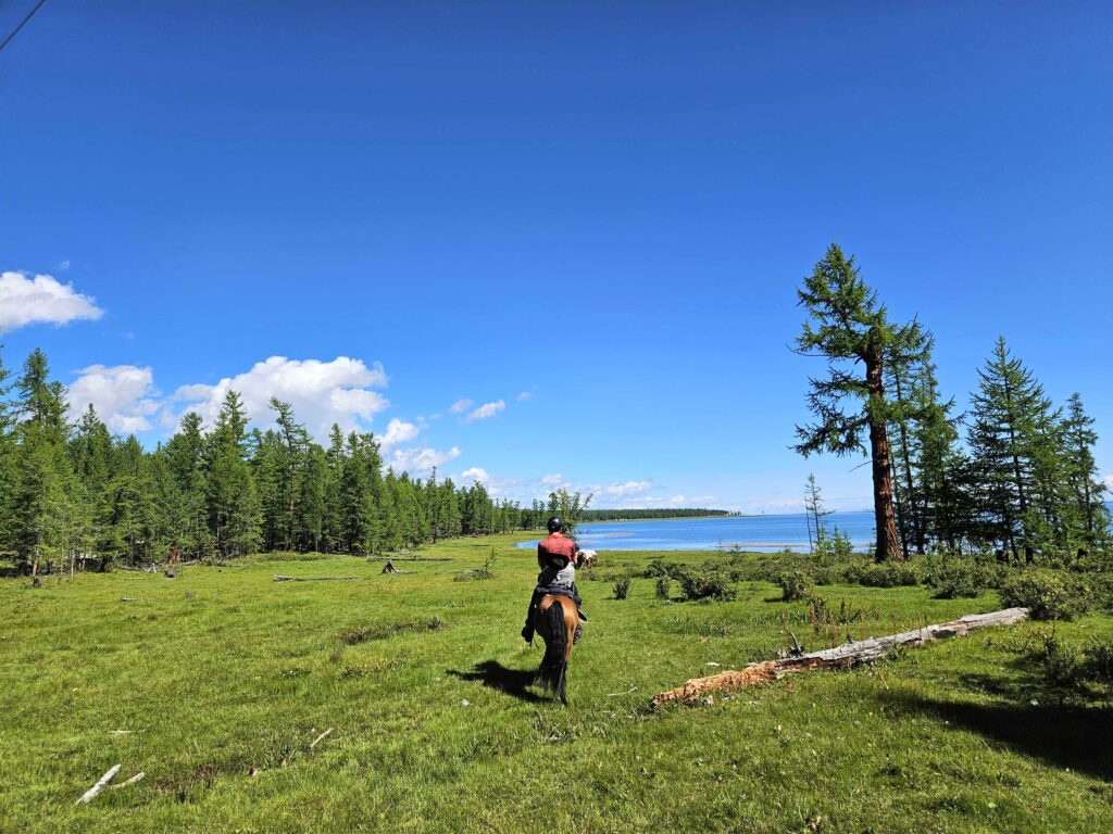 Wczesnym rankiem jedziemy na lotnisko. Czeka nas godzinny lot do Möron, stolicy prowincji Khövsgöl. Następnie wyruszamy samochodami na północ, do Khatgal. To miejscowość na południowym brzegu jeziora Chubsuguł o charakterystycznej architekturze: syberyjskie, drewniane chałupy przeplatają się tutaj z jurtami. Wsiadamy na konie i rozpoczynamy właściwy rajd. Tego dnia czeka nas około 15 km w siodle, a trasa prowadzi przez okoliczne wioski. Wieczorem rozbijamy camping po raz pierwszy.