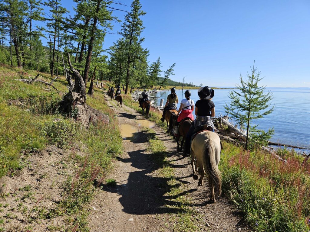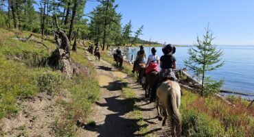 Po śniadaniu na łonie natury, wskakujemy na konie. Tego dnia w siodle przemierzymy 35 km. Korzystamy z malowniczej drogi prowadzącej wzdłuż wybrzeża. Według mongolskich historii Chubsuguł i Bajkał stanowiły dawniej jedność. W rzeczywistości oba jeziora mają raczej charakter ”bliźniaczy”: mieszczą się w tym samym rowie tektonicznym, przez co są wydłużone i bardzo głębokie. Połączone są pępowiną odpływu Egijn gol i Selengę. Po drodze zatrzymamy się na lunch, a wieczorem ponownie rozbijemy obozowisko.