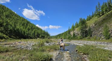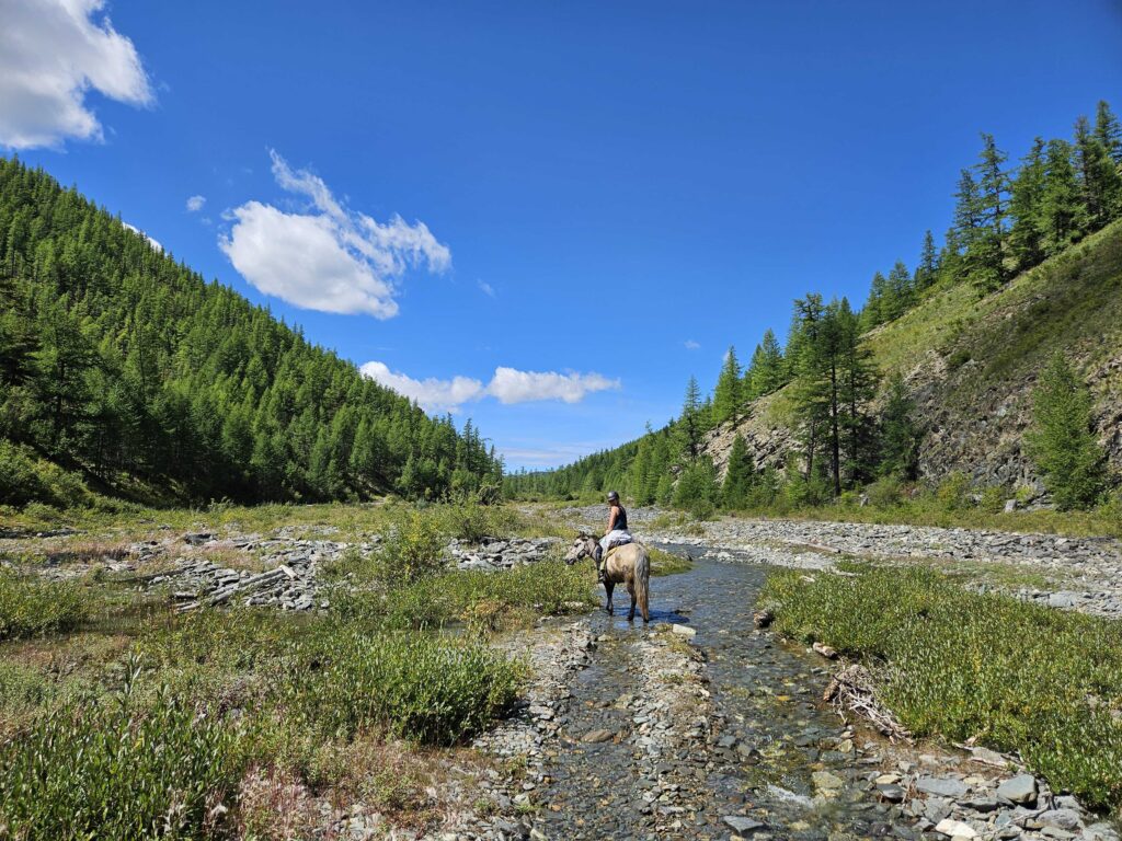Po śniadaniu zwijamy namioty, wskakujemy w siodła i ruszamy żwawo przed siebie, w kierunku rzeki Arsai. Teren jest łatwy, głównie lasy i równiny. Będziemy dużo galopować. Warto zwrócić uwagę na śpiewające wokół nas kukułki oraz wypatrywać susłów. Wieczorem docieramy do okolicy Eult, gdzie spędzimy noc.
