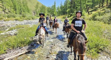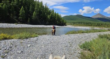 Po śniadaniu wskakujemy na konie i ruszamy dalej na północny zachód. Dwukrotnie skorzystamy z mostów, aby przekroczyć lokalne rzeki wpadające do majestatycznego jeziora Tsagaan nuur. Odwiedzimy także lokalną rodzinę. Będzie to dla nas okazja, aby skosztować mongolskiej herbaty oraz innych lokalnych przysmaków. Po lunchu ruszamy w dalszą drogę, a nocujemy w pobliżu rzeki Khogorgo.