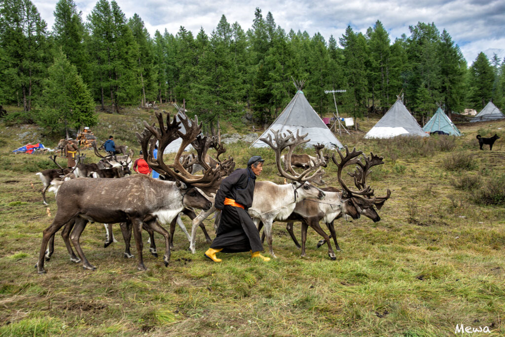 Nasza wyprawa to coś więcej niż tylko rajd konny. Przede wszystkim to doświadczenie niezwykłej kultury ludów zamieszkujących południową granicę Syberii. Będziemy mieli szansę zanurzyć się w tradycji mniej znanej, ale korzeniami sięgającej znacznie dalej niż kultury Wielkiego Stepu. Na plemię Dukha składają się dzisiaj 44 rodziny, łącznie mniej niż 400 osób. Ich codzienne życie to niemal mistyczna symbioza ze stadami reniferów, którym towarzyszą w wędrówce przez lasy i błota. Dukha są animistami, praktykują najstarszą mongolską odmianę szamanizmu. Tutaj świat duchowy przenika codzienność, a dźwięk szamańskiego bębna niesie się po tajdze i wyznacza rytm życia.